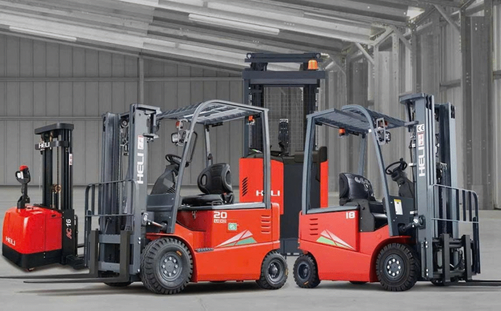 • Xe Forklift (Xe nâng hàng): Phù hợp cho hoạt động nâng – hạ hàng hóa trong kho bãi, container, nhà máy sản xuất.
